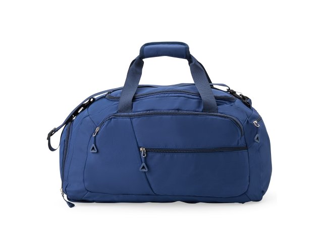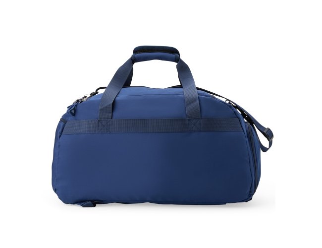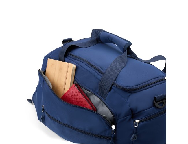 Descrição: Esta é uma bolsa esportiva que traz a combinação de versatilidade e praticidade em um design destacado. Feita em Oxford resistente à água e com capacidade de 42 litros, ela conta com espaço de sobra para armazenar trajes e equipamentos esportivos graças aos seus 4 compartimentos principais amplos, incluindo um bolso lateral mais espaçoso para carregar objetos à parte de outros itens, como calçados ou roupas molhadas. Além disso, a bolsa pode ser transportada de três formas diferentes: pela horizontal e com as mãos através do par de alças reforçadas com uma liga com fechamento em velcro para junção, também pela horizontal, com os ombros, adicionando a alça transversal removível ou ainda na vertical ao montar as alças para as costas localizadas na parte traseira, transformando-a em uma mochila convencional, com o bolso amplo da lateral ocupando o papel de abertura principal.