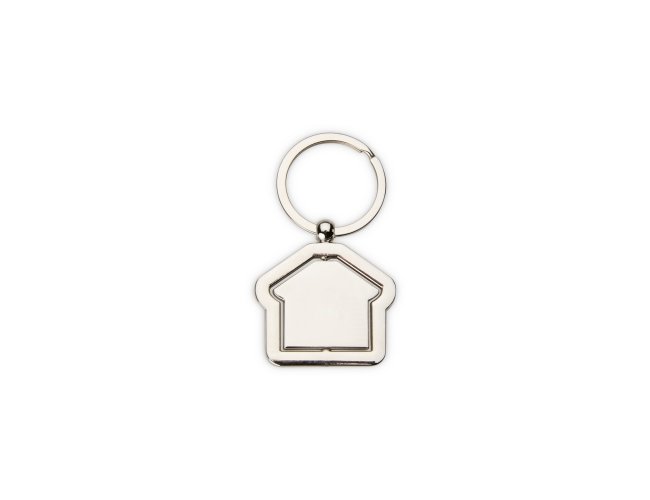 Descrição: Chaveiro metálico giratório feito em formato brilhante e argola de ferro, adequado para organizar chaves ou também como objeto decorativo.