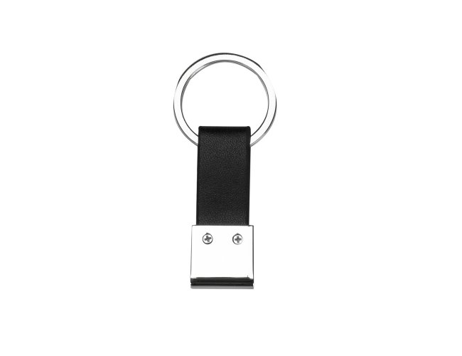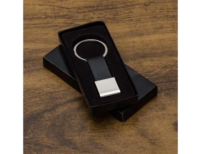 Descrição: Chaveiro de metal quadrado com alça de couro sintético. Frente lisa e verso com detalhe do parafuso.