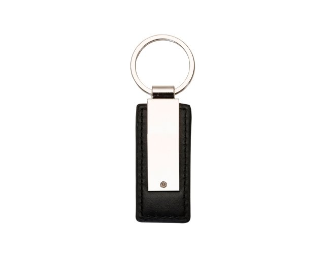 Descrição: Chaveiro metálico brilhante com detalhe em couro sintético, área frontal lisa e verso com parafuso.