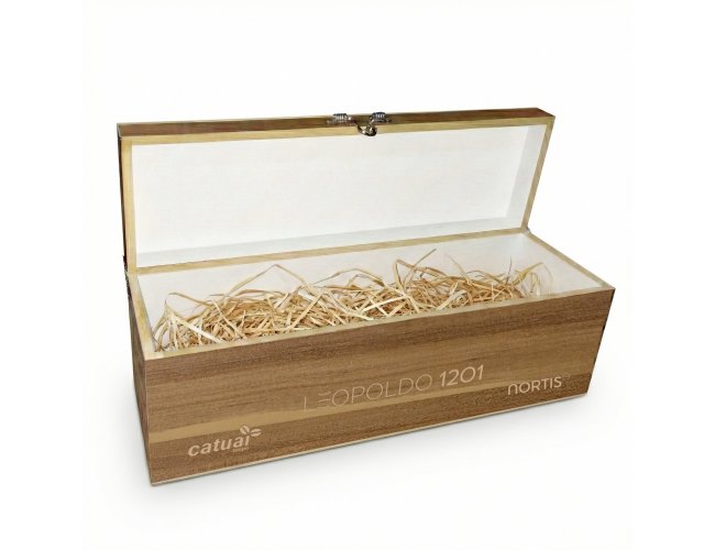 A embalagem e confeccionada em MDF LAMINADO e seu diferencial e a qualidade e visual que traz um toque contemporâneo.
