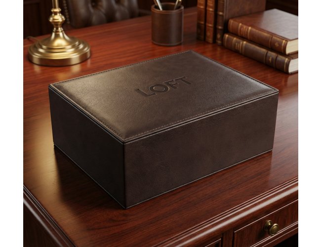01 - Caixa de MDF com revestimento em couro sintético e acabamento interno de suedy,