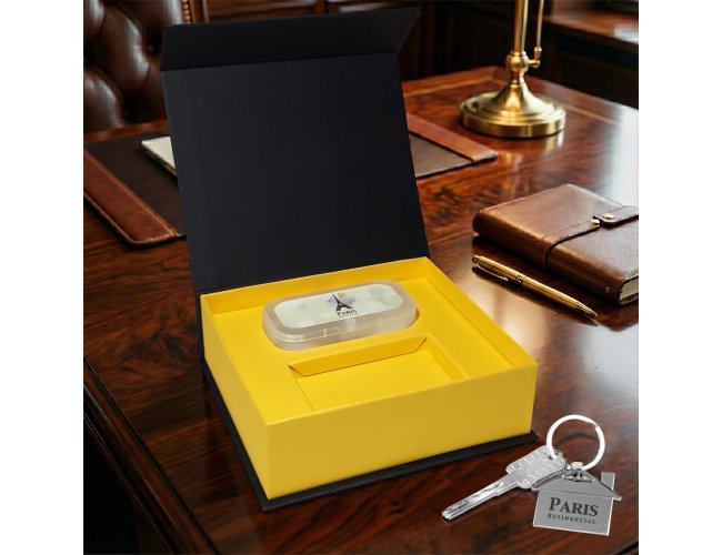 O kit cartonado foi projetado para o momento da entrega da chave.
