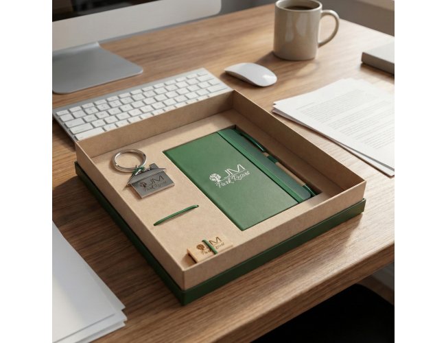 Caixa entrega da chave confeccionado em kraft 400 gramas Ecológico e na capa PAPAL DIGITAL COUCHÊ 300 GRAMAS com gravação frente e verso.