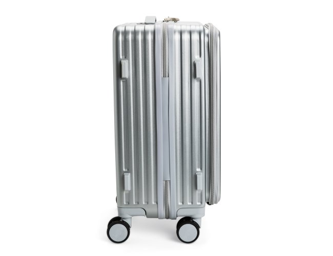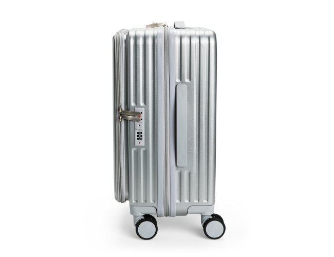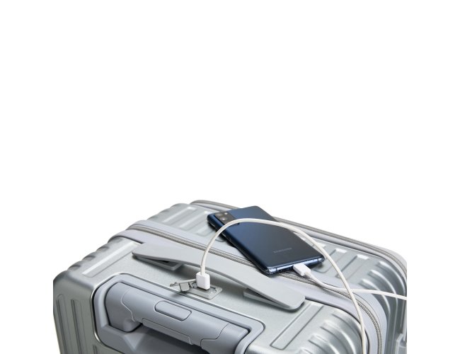 Descrição: Mala de viagem feita em policarbonato (PC) com capacidade de até 32 litros. Apresenta compartimentos internos de difernetes tamanhos, incluindo um bolso telado e outro em plástico para itens molhados, além de cinta compressora no lado oposto. Possui alça superior, alça lateral, puxador retrátil ajustável, quatro rodinhas com rotação de 360 graus, adaptador para cabo USB, suporte para copo ou garrafa, quatro apoios laterais e cadeado numérico TSA. Dispõe ainda de compartimento frontal com três bolsos em tamanhos variados.